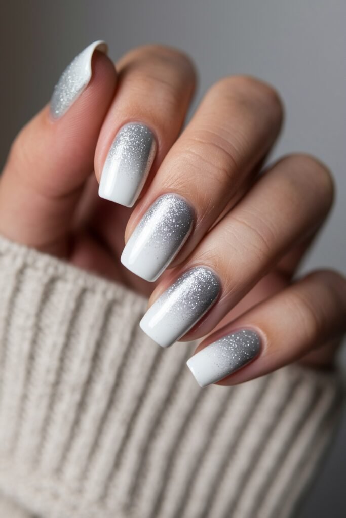 Ombre silver and white nails
